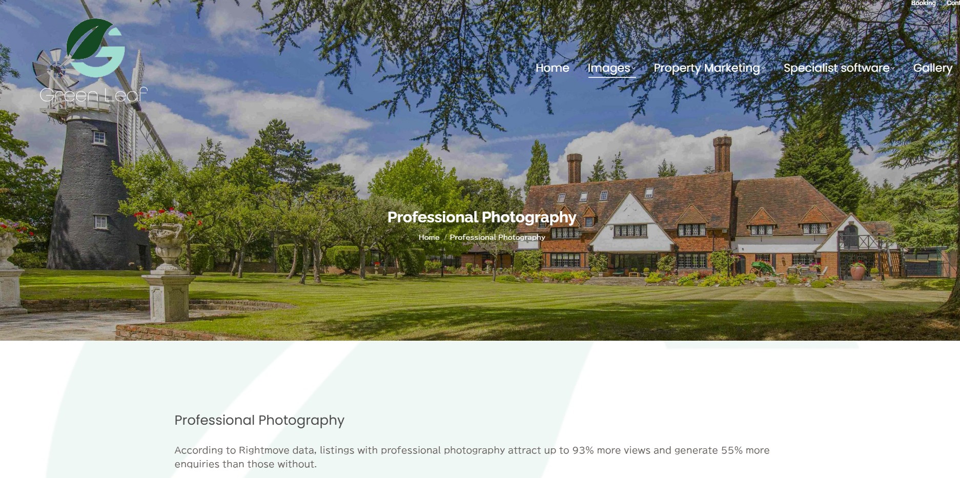 Greenleaf Property Solutions doesn’t offer just one service — it provides a complete property marketing solution. That meant the website needed to balance variety with clarity, helping users quickly understand the different service areas without feeling overwhelmed. The business covers professional photos, elevated photography, drone photography and video, virtual tours, specialist editing, bespoke boards, brochures, EPCs and floor plans, all under one brand.